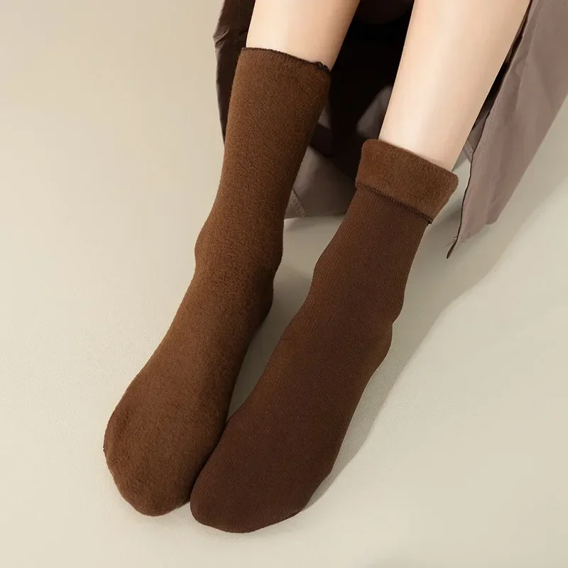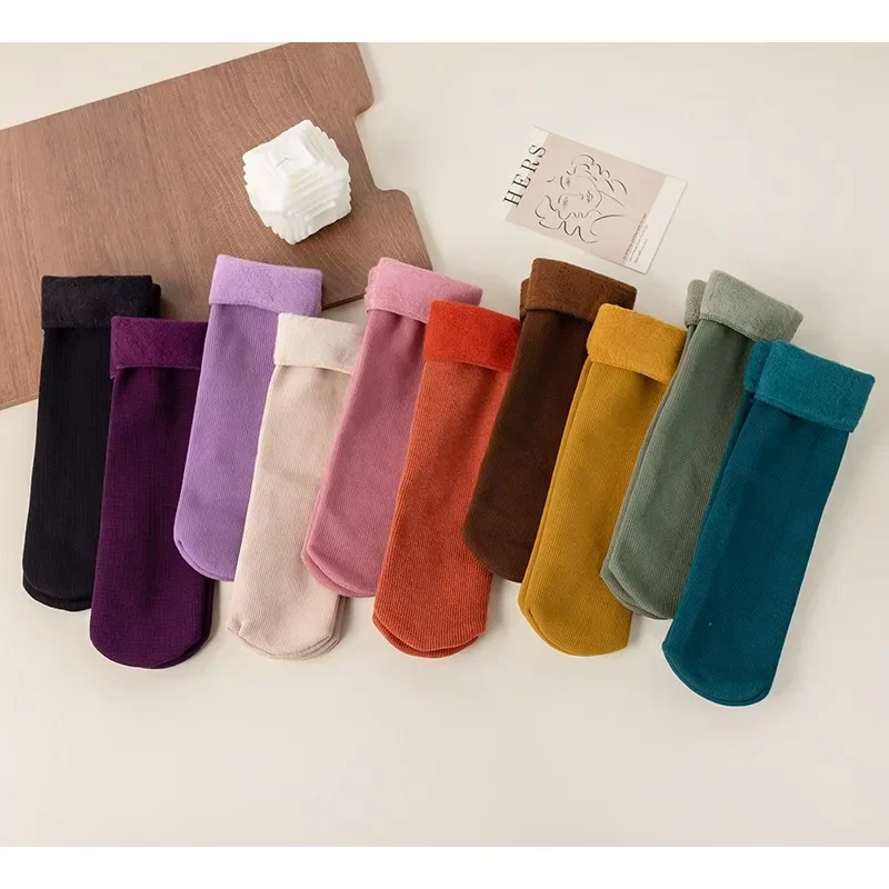 1/5Pairs Women Winter Velvet Snow Boots Socks Warm Thermal Thicken Fleece Soft Cosy Socks Colorful Home Snow Boots Floor Sock